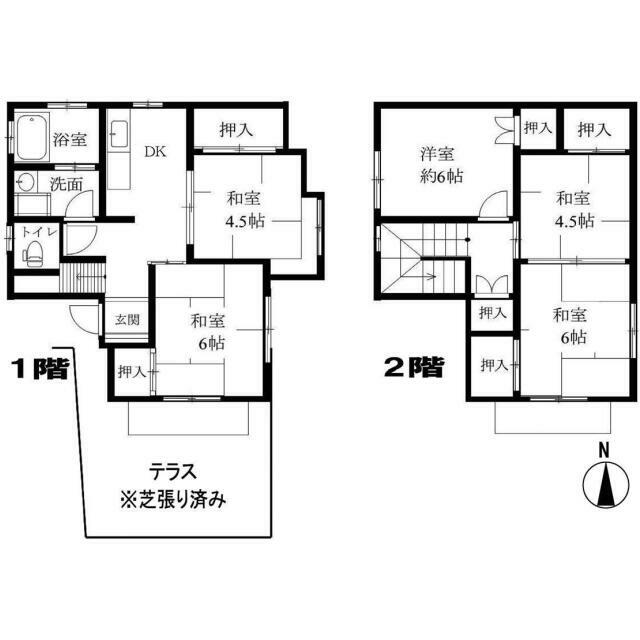| 間取り(内訳) | 5DK(和6/6/4.5/4.5洋6DK8) | 建物面積 | 74.33㎡ |